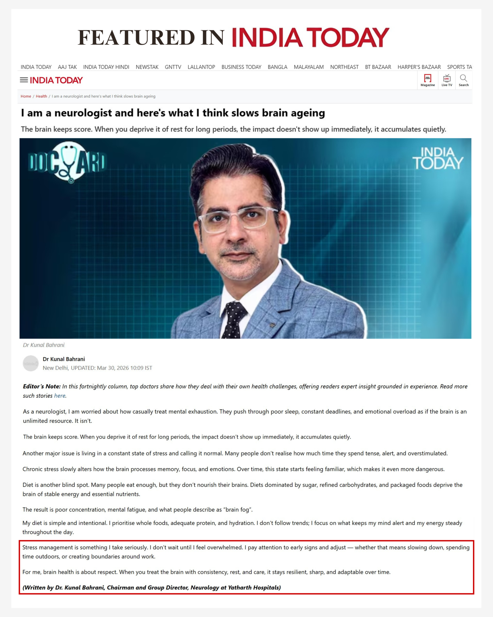 Dr Kunal Bahrani - Featured in News
